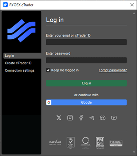 它與您的 My RYOEX 帳戶是分開的,專門用於登入 cTrader 及管理您的交易帳戶。