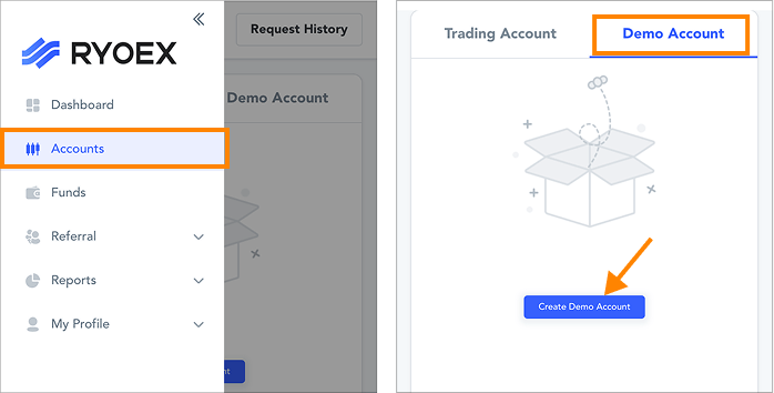 My RYOEX ist Ihr persönliches Dashboard, in dem Sie Ihre RYOEX-Handelskonto und -mittel an einem Ort verwalten können.
