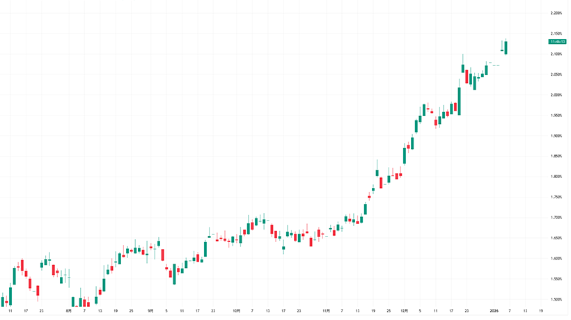 現状: 約26年ぶりの高水準に達し、長年の超低金利時代からの完全な脱却を示唆しています。